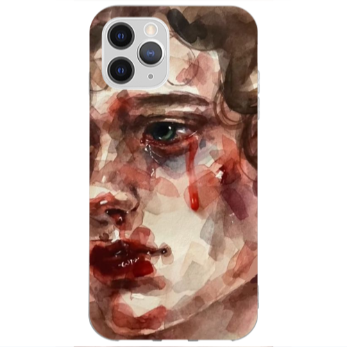 Apple iPhone 12 Pro Max Üzgün Kadın Siyah Renkli Silikon Telefon Kılıfı