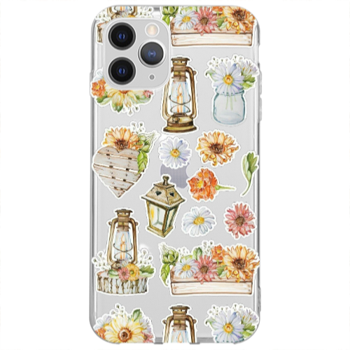 Apple iPhone 12 Pro Max Açık Çiçek2 Krem Renkli Silikon Telefon Kılıfı