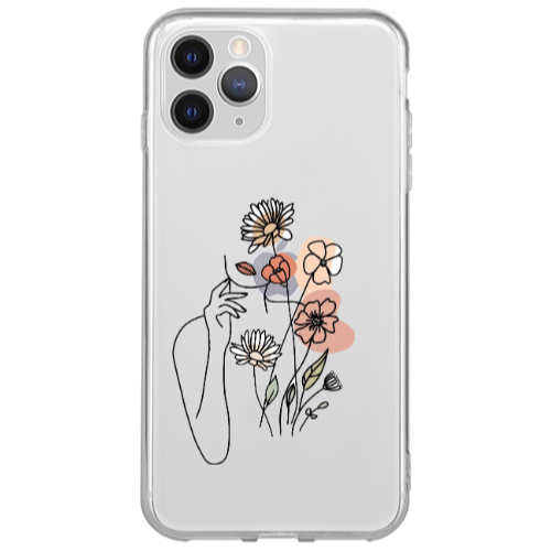 Apple iPhone 12 Pro Max Kadın Çiçek 2 Transparent Şeffaf Telefon Kılıfı