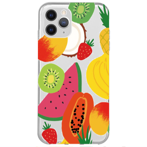 Apple iPhone 11 Pro Max Meyveler Pembe Renkli Silikon Telefon Kılıfı