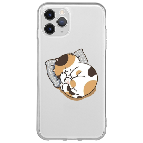 Apple iPhone 11 Pro Max Uykucu Kedi Sarı Renkli Silikon Telefon Kılıfı