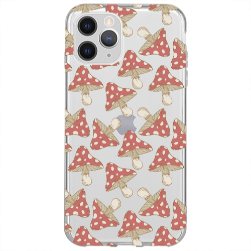Apple iPhone 11 Pro Max Mantarlar Krem Renkli Silikon Telefon Kılıfı