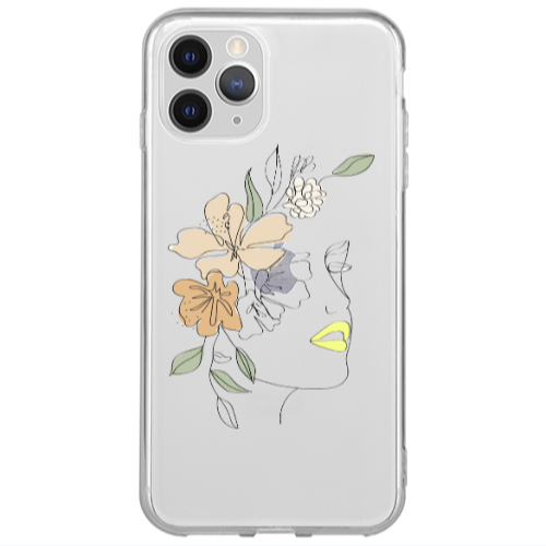 Apple iPhone 11 Pro Max Kadın Silüet Çiçek Lila Hux Telefon Kılıfı