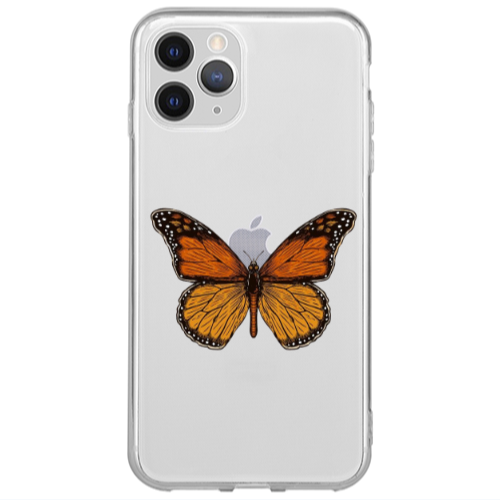Apple iPhone 11 Pro Max Kahve Kelebek Açık Yeşil Renkli Silikon Telefon Kılıfı
