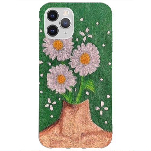 Apple iPhone 11 Pro Max Çiçek Kafa Pembe Renkli Silikon Telefon Kılıfı