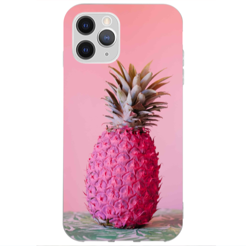 Apple iPhone 11 Pro Max Pembe Ananas Açık Yeşil Renkli Silikon Telefon Kılıfı