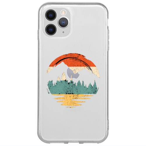 Apple iPhone 11 Pro Max Şeffaf Manzara Lila Renkli Silikon Telefon Kılıfı