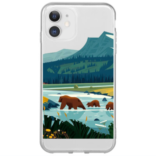 Apple iPhone 12 Mini Ayılar Pembe Renkli Silikon Telefon Kılıfı