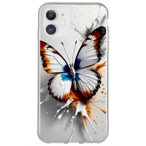 Apple iPhone 12 Mini Renkli Kelebek Lila Renkli Silikon Telefon Kılıfı