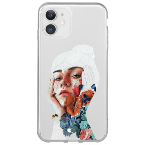 Apple iPhone 12 Mini Çiçek Kadın Kırmızı Renkli Silikon Telefon Kılıfı