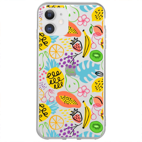 Apple iPhone 12 Mini Karışık Meyve3 Sarı Renkli Silikon Telefon Kılıfı