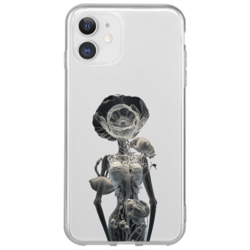 Apple iPhone 12 Mini Çiçek Kadın3 Koyu Yeşil Renkli Silikon Telefon Kılıfı