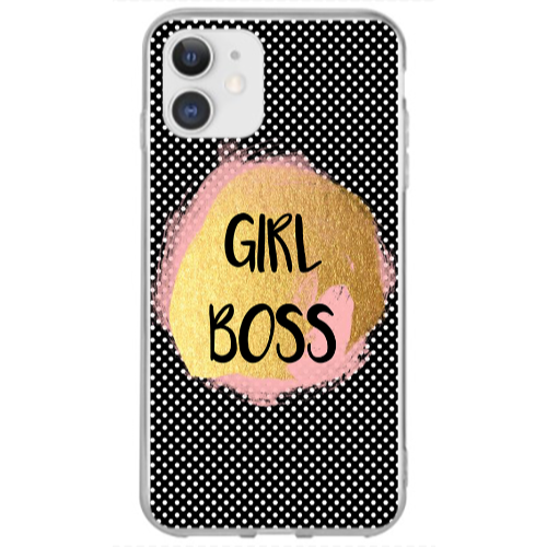 Apple iPhone 12 Mini Siyah Girl Boss Pembe Renkli Silikon Telefon Kılıfı