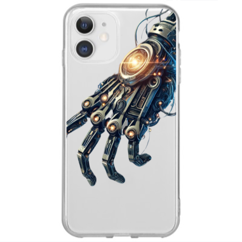 Apple iPhone 12 Mini Robotik El Sarı Renkli Silikon Telefon Kılıfı
