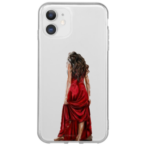 Apple iPhone 12 Mini Kırmızı Elbise Sarı Renkli Silikon Telefon Kılıfı