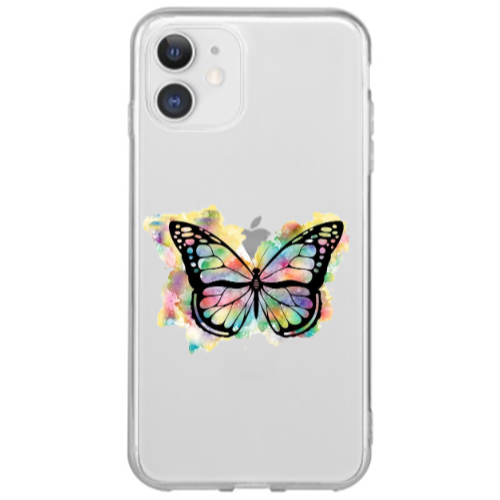 Apple iPhone 12 Mini Rengarenk Kelebek Koyu Yeşil Renkli Silikon Telefon Kılıfı