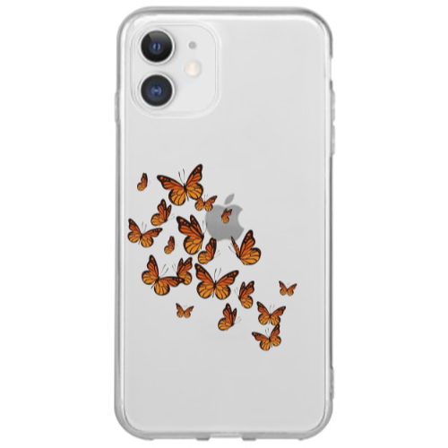 Apple iPhone 12 Mini Kahve Kelebekler Lila Hux Telefon Kılıfı