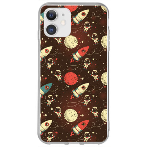 Apple iPhone 12 Mini Astronotlar Kırmızı Renkli Silikon Telefon Kılıfı