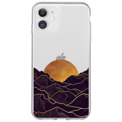 Apple iPhone 12 Mini Siyah Dağ3 Açık Yeşil Renkli Silikon Telefon Kılıfı