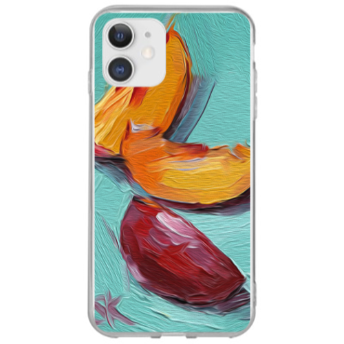 Apple iPhone 12 Mini Dilim Şeftali Lila Renkli Silikon Telefon Kılıfı