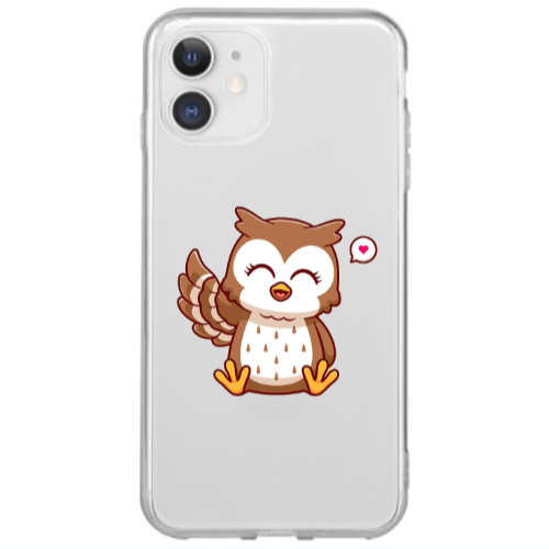Apple iPhone 12 Mini Baykuş Sarı Renkli Silikon Telefon Kılıfı