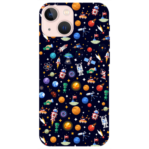 Apple iPhone 13 Mini Vektörel Gezegenler Beyaz Renkli Silikon Telefon Kılıfı