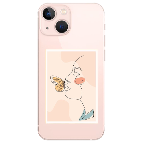 Apple iPhone 13 Mini Çiçek Line Kadın Pembe Renkli Silikon Telefon Kılıfı