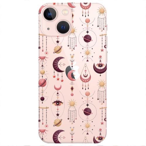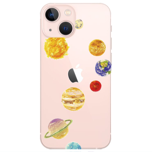 Apple iPhone 13 Mini Gezegenler Siyah Renkli Silikon Telefon Kılıfı