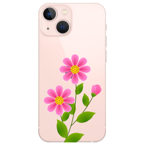Apple iPhone 13 Mini Pembe Çiçekler Turkuaz Hux Telefon Kılıfı
