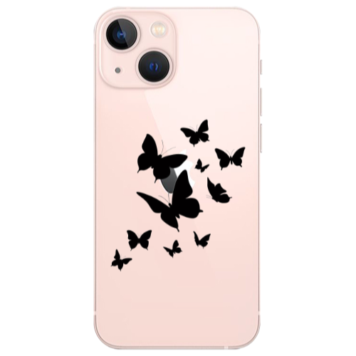 Apple iPhone 13 Mini Kelebek Line2 Siyah Hux Telefon Kılıfı