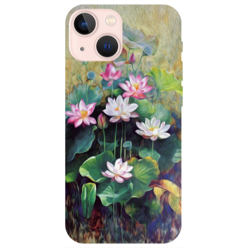 Apple iPhone 13 Mini Mor Beyaz Açık Yeşil Renkli Silikon Telefon Kılıfı