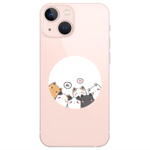 Apple iPhone 13 Mini Kediler Siyah Renkli Silikon Telefon Kılıfı