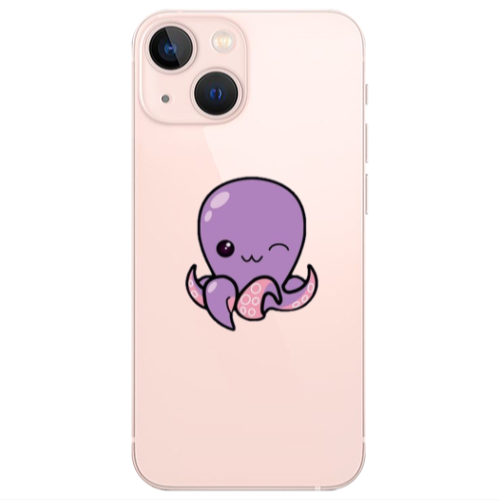 Apple iPhone 13 Mini Mor Ahtapot Kırmızı Renkli Silikon Telefon Kılıfı