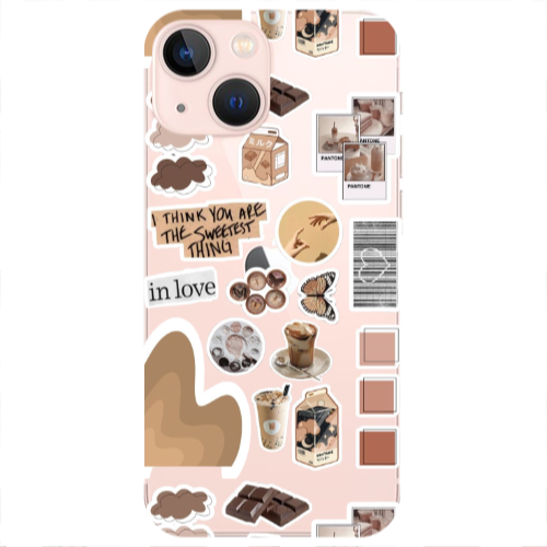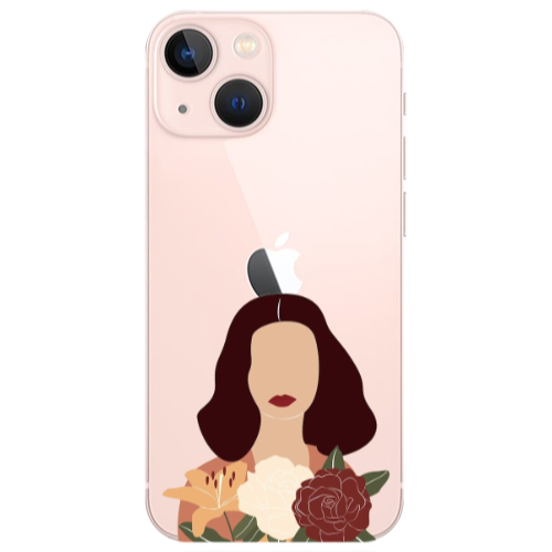 Apple iPhone 13 Mini Kahve El Lila Renkli Silikon Telefon Kılıfı