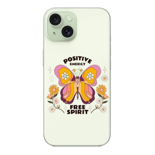 Apple iPhone 15 Kelebek Kanadı Sarı Renkli Silikon Telefon Kılıfı