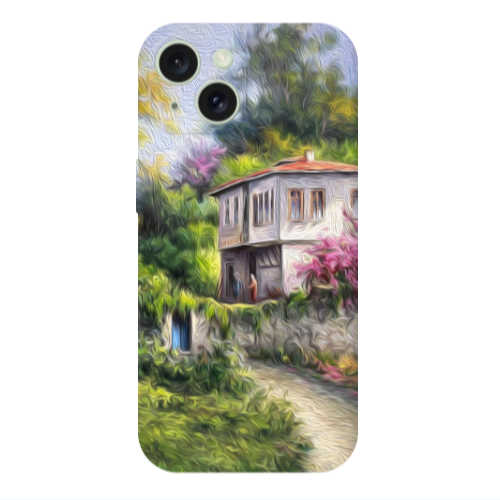Apple iPhone 15 Beyaz Ev Lila Renkli Silikon Telefon Kılıfı