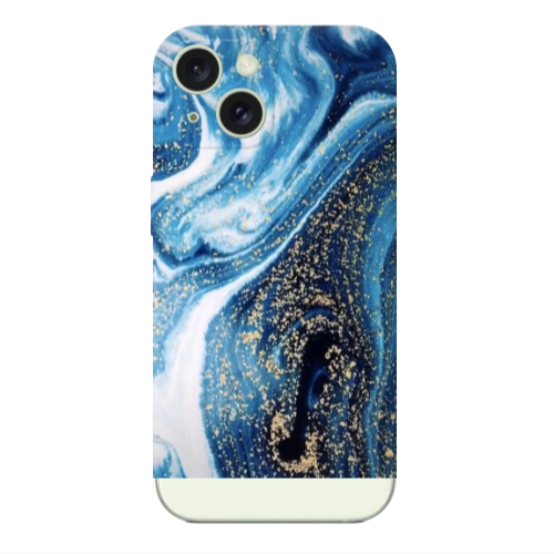Apple iPhone 15 Simli Mavi Açık Yeşil Renkli Silikon Telefon Kılıfı