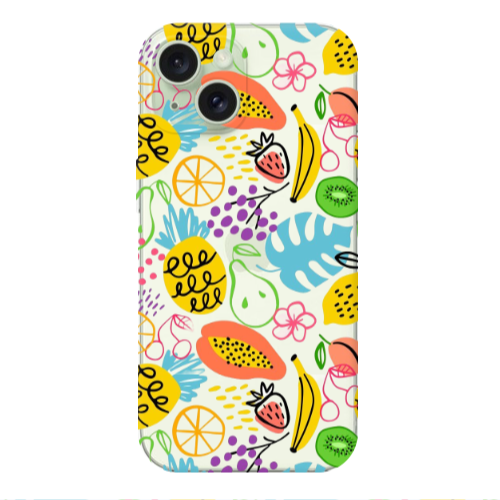 Apple iPhone 15 Karışık Meyve3 Kırmızı Renkli Silikon Telefon Kılıfı