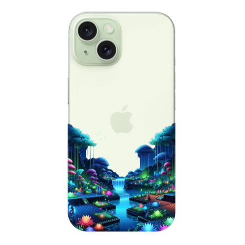 Apple iPhone 15 Yapay Manzara Sarı Renkli Silikon Telefon Kılıfı