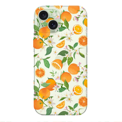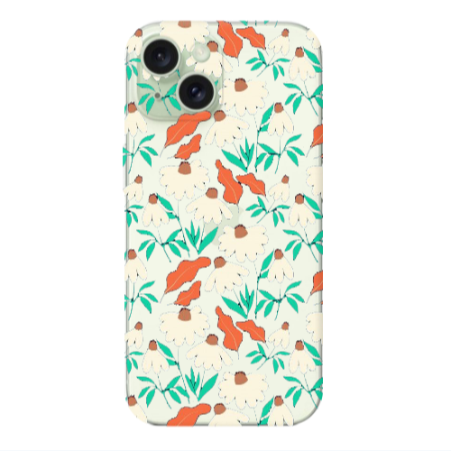 Apple iPhone 15 Turuncu Yaprak Koyu Yeşil Renkli Silikon Telefon Kılıfı