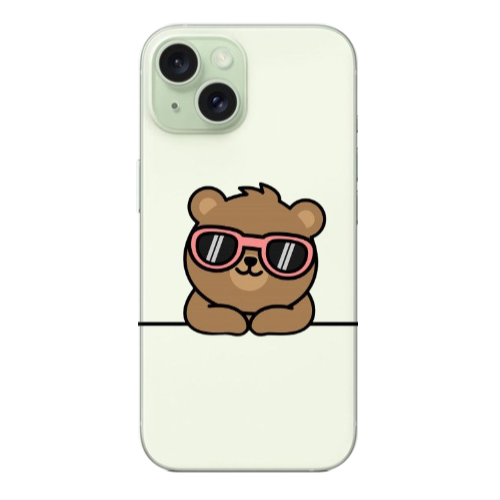 Apple iPhone 15 Pembe Gözlük Sarı Renkli Silikon Telefon Kılıfı