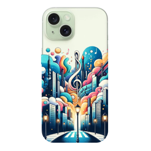 Apple iPhone 15 Müzik Sokağı Siyah Renkli Silikon Telefon Kılıfı