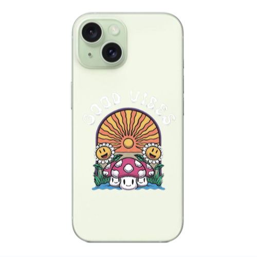 Apple iPhone 15 No Bad Vibes Pembe Renkli Silikon Telefon Kılıfı