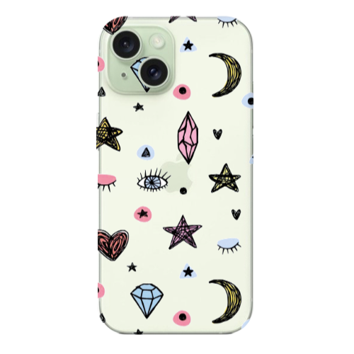 Apple iPhone 15 Elmas Yıldız Ay Sarı Renkli Silikon Telefon Kılıfı