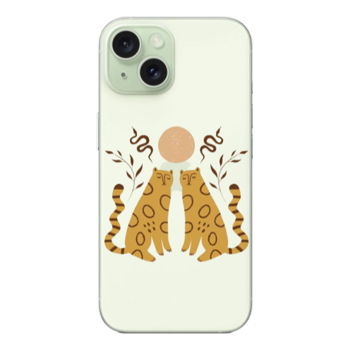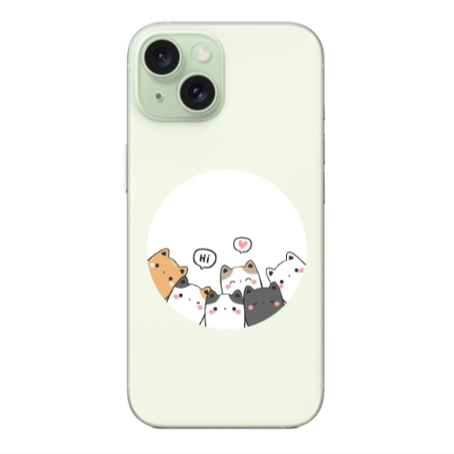 Apple iPhone 15 Kediler Açık Yeşil Renkli Silikon Telefon Kılıfı