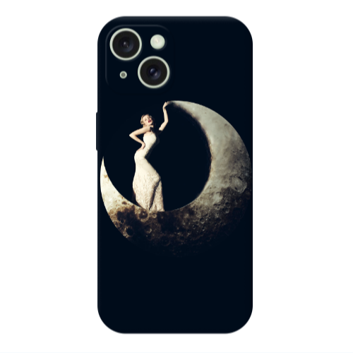 Apple iPhone 15 Ay Kadın Krem Renkli Silikon Telefon Kılıfı