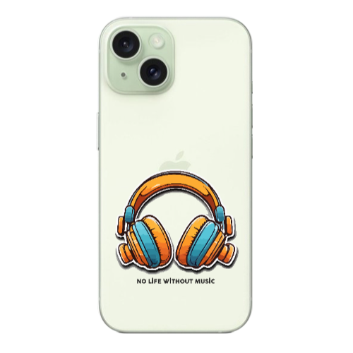 Apple iPhone 15 no life without music Sarı Renkli Silikon Telefon Kılıfı