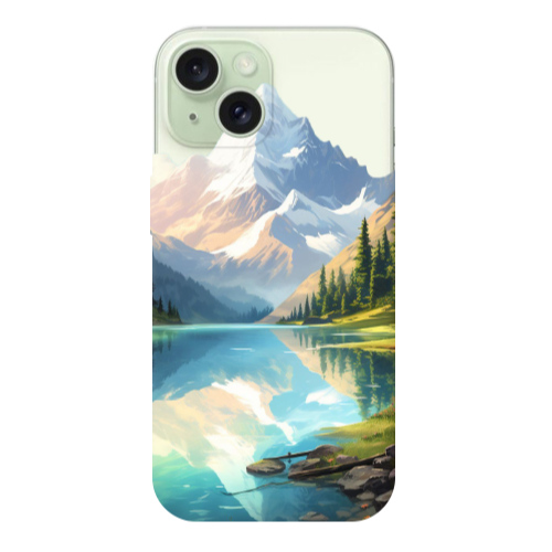 Apple iPhone 15 Mavi Dağ2 Krem Renkli Silikon Telefon Kılıfı