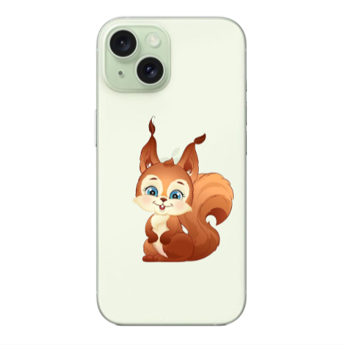 Apple iPhone 15 Tatlı Sincap Lila Renkli Silikon Telefon Kılıfı