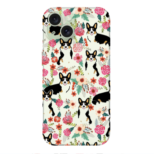 Apple iPhone 15 Köpek Çiçekler Lila Renkli Silikon Telefon Kılıfı